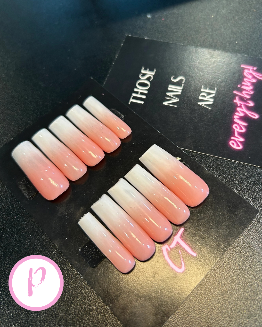 made with gel nail tips, gel polish, and topped with polygel for that salon look and quality